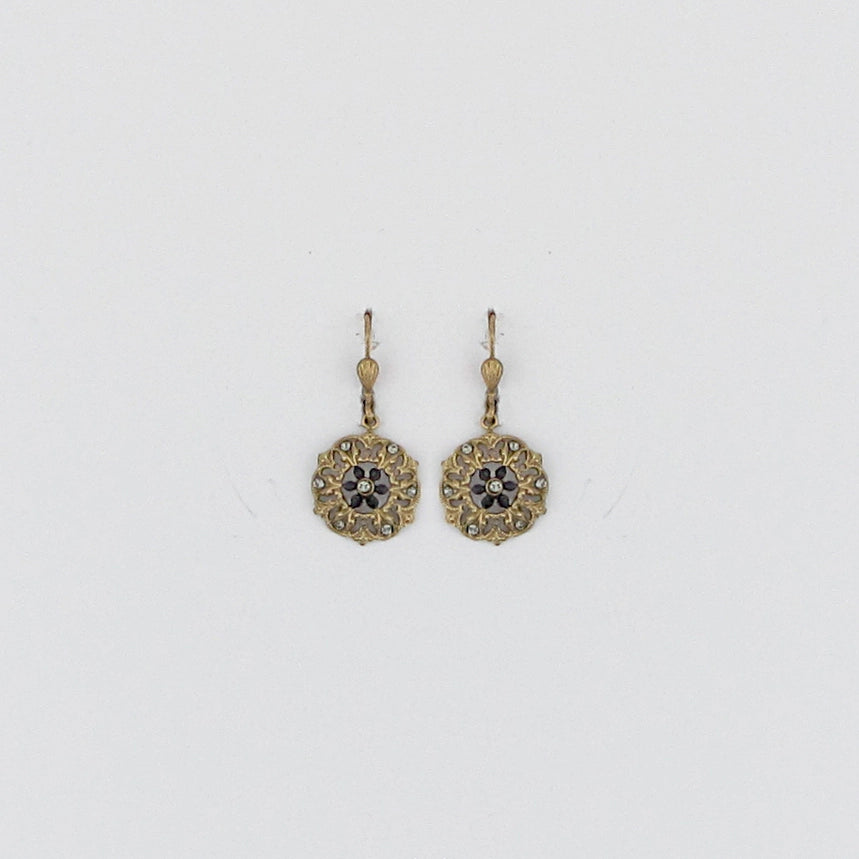 Add a touch of art to your look with these elegant earrings. Each piece features a graceful, hand-enameled flower surrounded by fine, delicate filigree. The design is completed with sparkling, hand-set European crystals, adding a touch of brilliant light. These earrings are a charming, elegant statement that will bring vintage sophistication to any outfit.