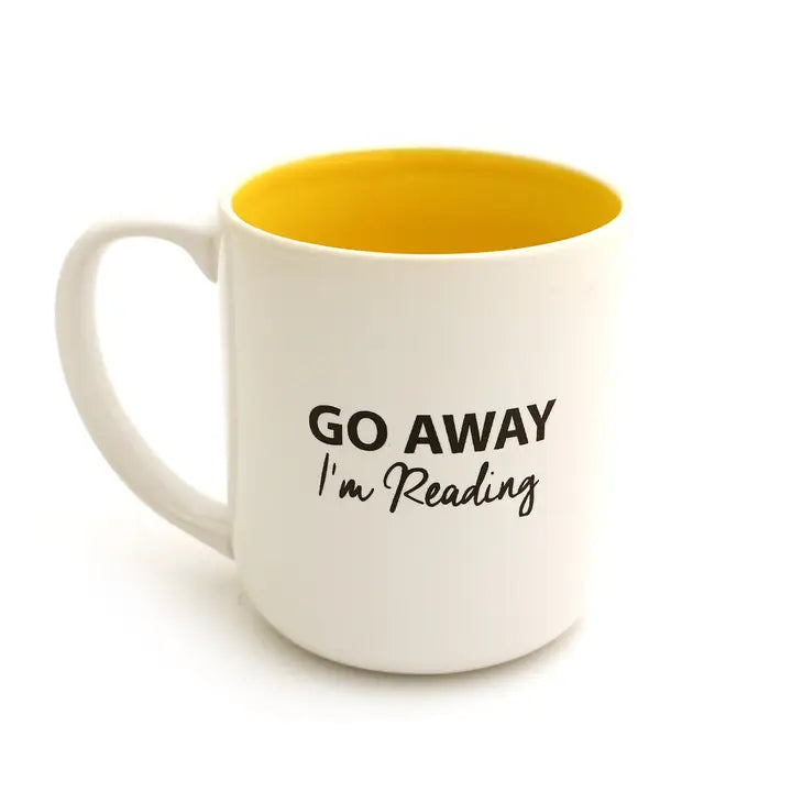 Books...because it's too peopley outside. Great gift for a reader- especially if they are introverted and prefer literary characters to the real ones! Back reads: Go away I'm Reading. This is a handmade ceramic travel mug created by me in my New Jersey studio. This is a stoneware mug measuring 4 x 4. Interior is a bright yellow. Kiln fired, lead free glazes. Holds 16 oz. Dishwasher and microwave safe.