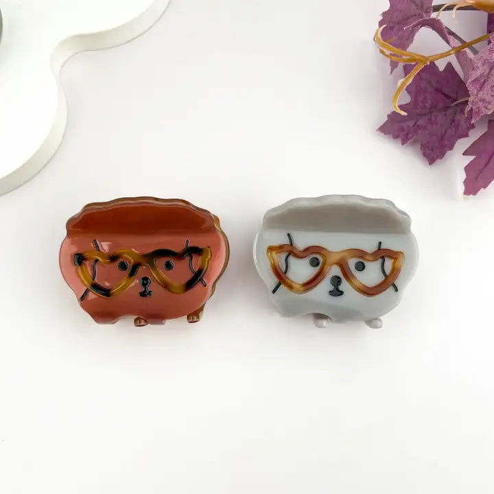 Cute Dog with Heart Glasses Hair Claw Clip