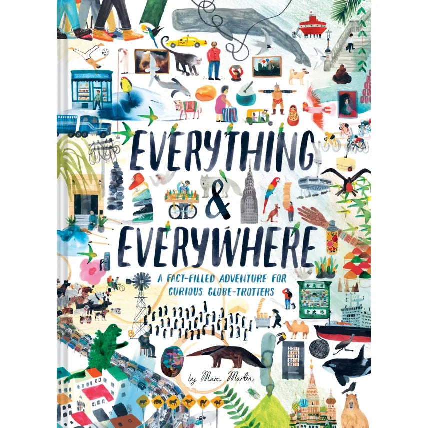 From Marc Martin, best-selling author and illustrator of the award-winning children’s book A River, named Best Illustrated Picture Book by the New York Times. From Hong Kong to Reykjavik, Ulaanbaatar to New York City, this beautifully illustrated, fact-filled adventure book will take curious kids on a lush and unexpected journey around the globe to discover what makes each place unique. Sleepy sloths, colorful cows, staggering skylines, and terrible traffic—countless surprises await globetrotting children of all ages. All you and your child need is a good travel guide and a big imagination. Let's go! • Kids will have fun while they learn about different cultures • Features facts about 15 places and cultures for a great introduction to the world • Instills curiosity about the world and respect for others