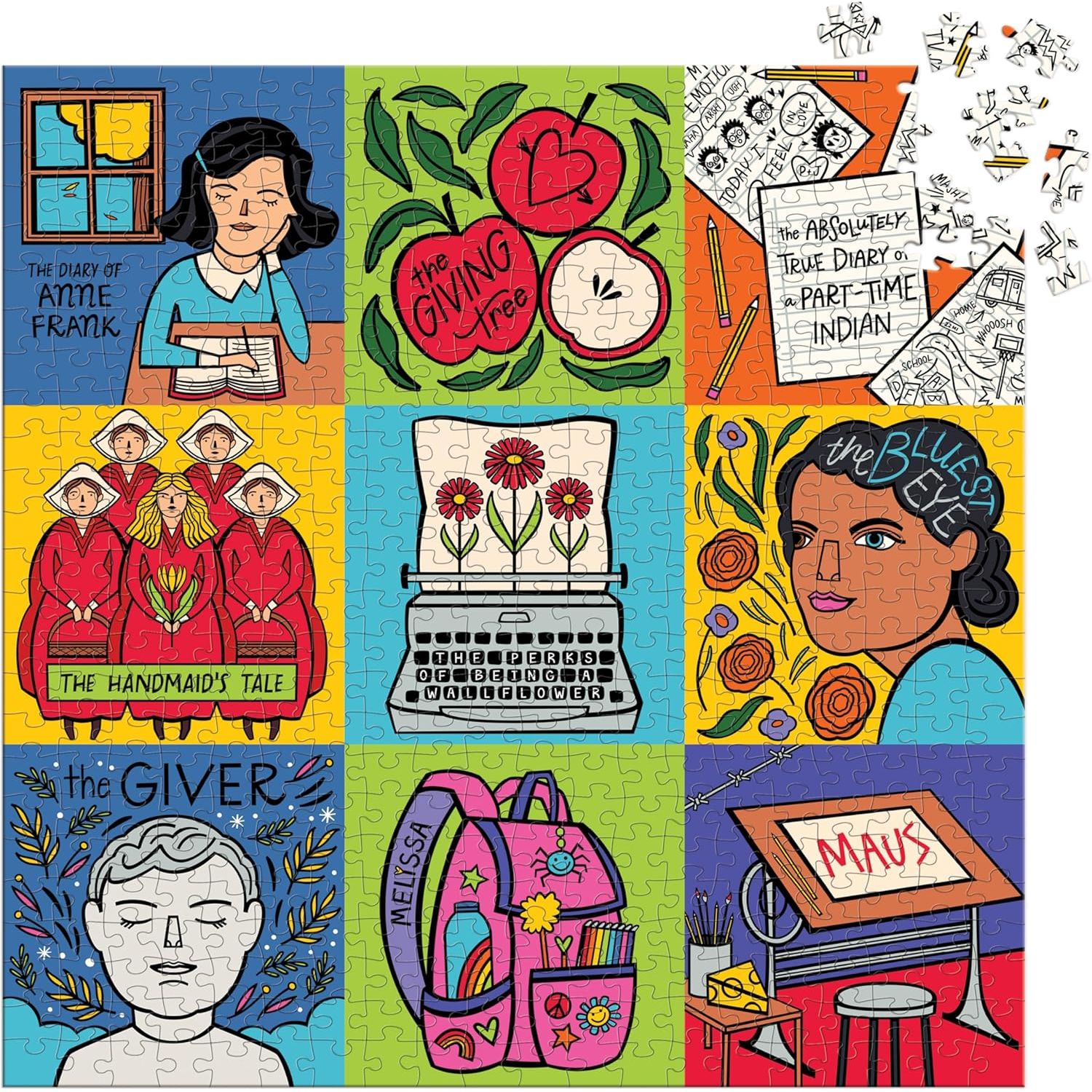 This puzzle features colorful illustrations of infamously banned books like The Diary of Anne Frank and To Kill A Mockingbird. This puzzle is designed to introduce children to books that have deep and profound meaning.