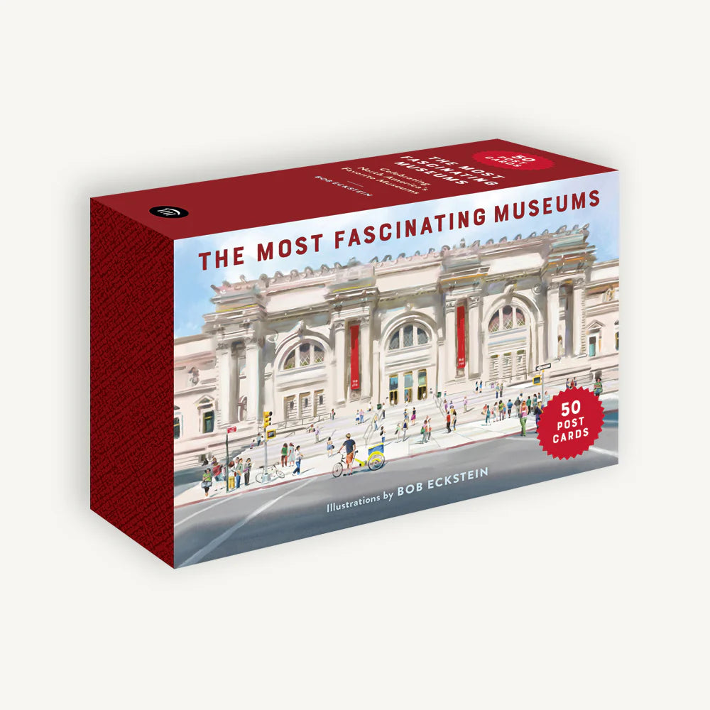 Curated by the New York Times bestselling author Bob Eckstein, this postcard set features the most beloved museums of North America. Fifty gorgeously rendered art postcards offer a delightful twist on art history by showing these institutions in a way not seen before, illustrated in a lush and idealized style.