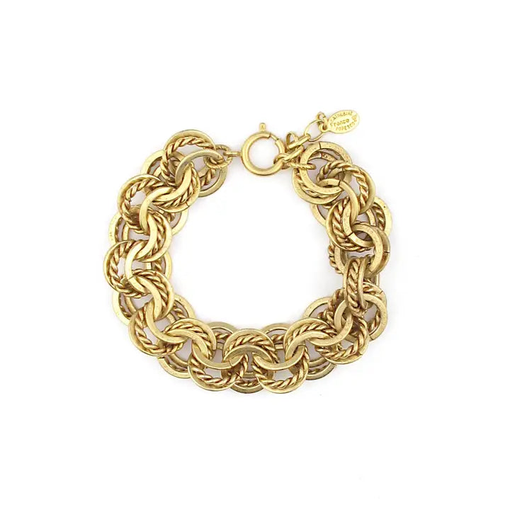 Three interlocking rings form each bold, chunky link, giving this bracelet its distinctive and sculptural design. Luxuriously gold-plated, it makes a striking statement on its own or adds effortless edge when stacked with other favorites