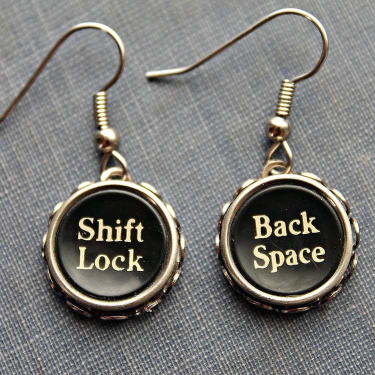 Typewriter key earrings featuring the function keys. Made with black or light typewriter keys. Each finished piece is a unique work of art and makes a great gift or something special for yourself. Because real vintage typewriter keys are used, the appearance may vary, and keys may show signs of use/wear, adding character to every piece. Your earrings will vary from picture shown.