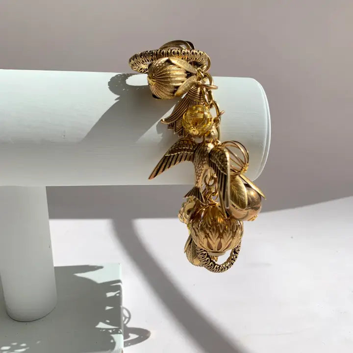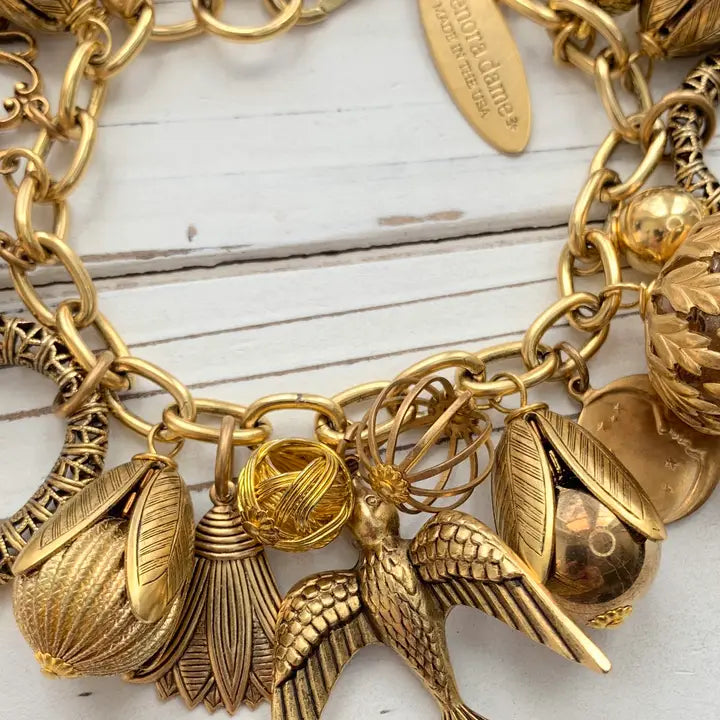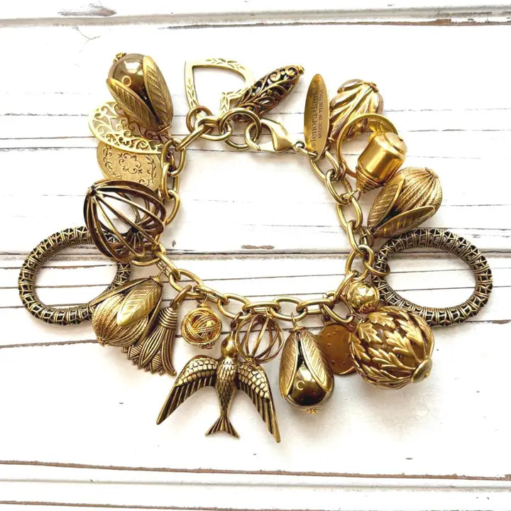 Fantastic classic vintage inspired charm bracelet to add to your collection. Great worn with other bracelets. This will become your favorite everyday go-to dangling charm bracelet. ~High-quality, brass plated chain. 8"L with lobster clasp.