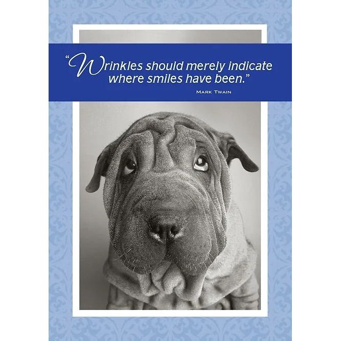 Cover: "Wrinkles should merely indicate where smiles have been." Mark Twain